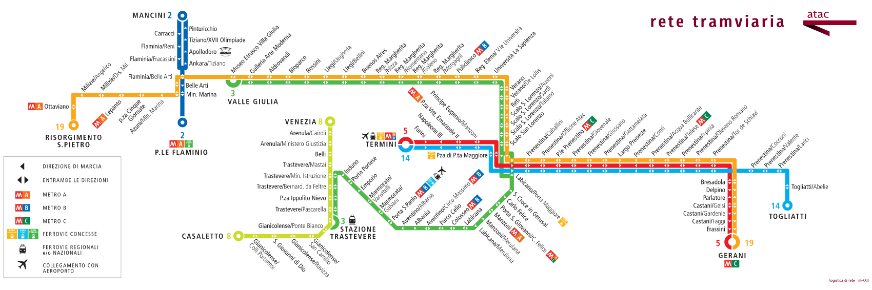 - Termini: Scambio tra le due linee e punto di arrivo del Leonardo Express da Fiumicino.