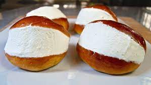 Dulcis in fundo; usiamola questa espressione latina ogni tanto, a maggior ragione se ci serve per descrivere la colazione romana più amata in assoluto. Il maritozzo con la panna alla mattina è un momento più sacro della messa: questo panino dolce di pasta lievitata nasce come dolce quaresimale e all’inizio non prevedeva affatto la farcia cremosa, piuttosto l’impasto era comunemente arricchito da pinoli, uvetta e arancio candito.
